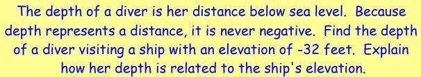 The depth of the diver is the absolute value of -32 since it can't be negative.