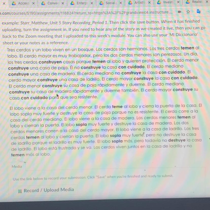 3. En mi tiempo libre me gusta tocar el piano y ver series de comedia porque es muy divertido.