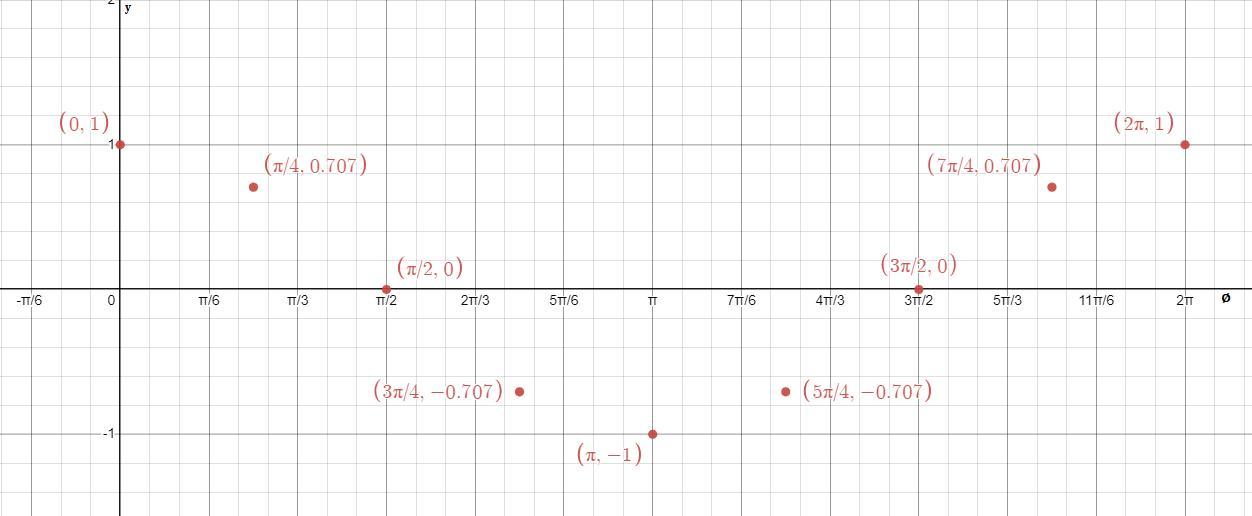 Hence, the domain and the range are 0 ≤ ∅ ≤ 2π and -1 ≤ cos(∅) ≤ 1, respectively.