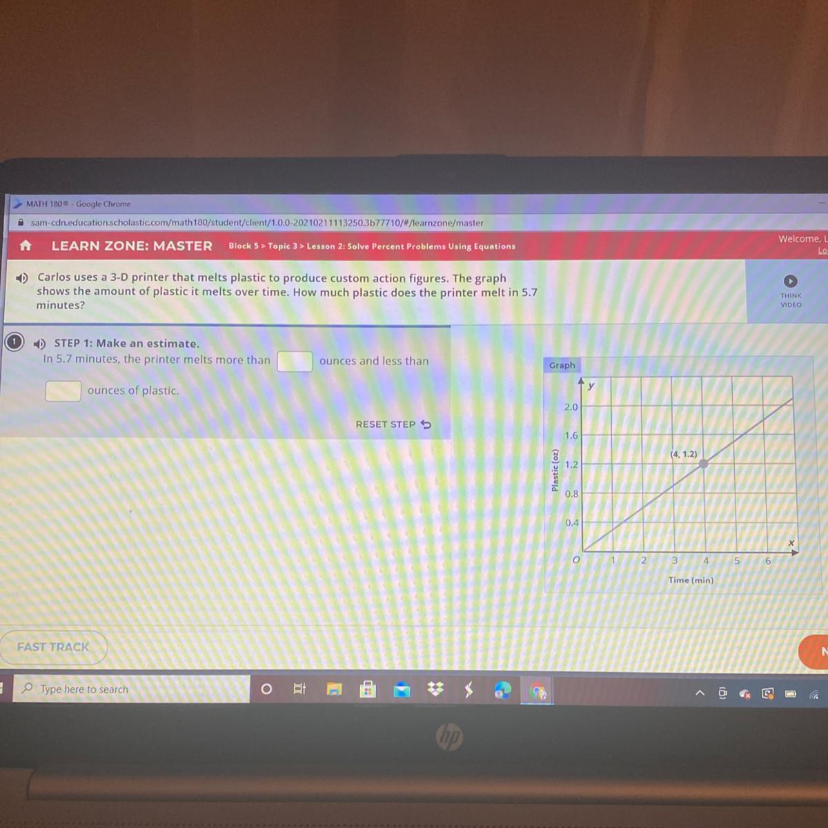 To find this, you would use the point on the graph. Divide both of those numbers by 4.
