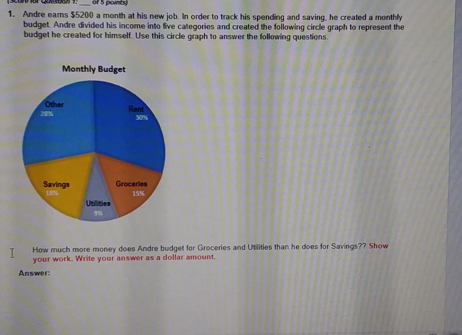Andre budgets 312 dollars more for Groceries and Utilities than for savings.