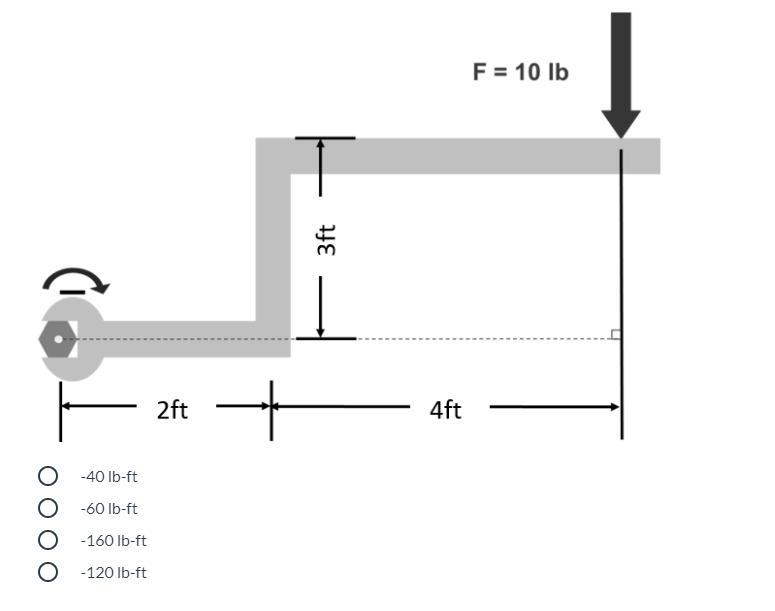 (4 ft − 3 ft) × 10 lb = 10 ft·lb.