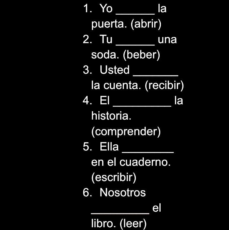 9. Nosotros comemos en clase.