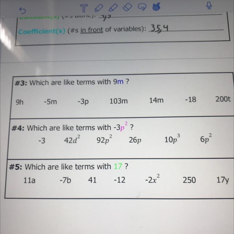 For question 3, all the terms that have the variable m are like terms.