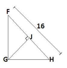 The square of the altitude is equal to the product of the base of the triangles. The length of line segment GJ is 8units