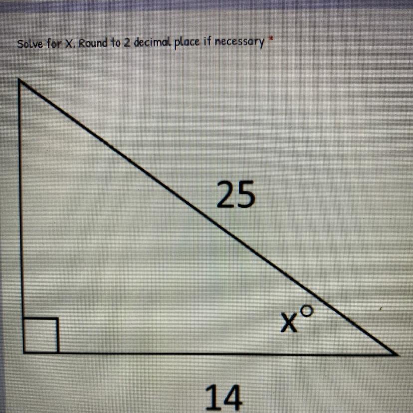 The adjacent side of x is 14 and the hypotenuse is 25.