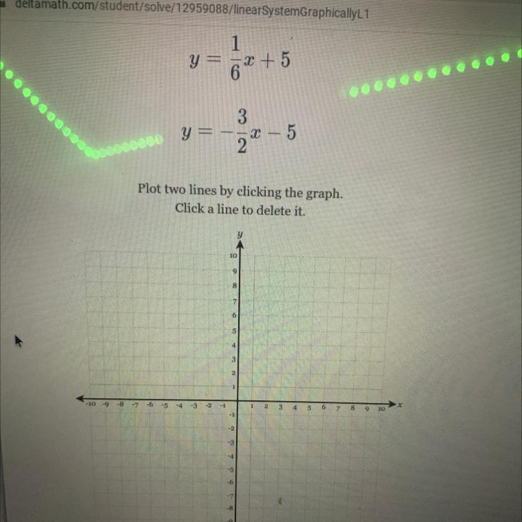 y=1/6x+5 -> plot points (-6,4),(0,5),(6,6)