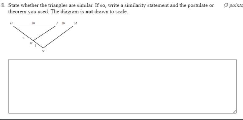 Since you can set up a proportion where 30 is to 10 as 10 is to 1 then we see that one triangle is a multiple of the other by a scale factor of 10, so they are similar since they have a scalar multiple. since =
