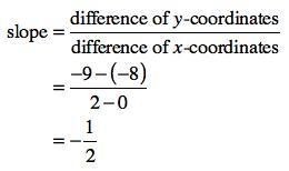 You can see that (0,-8) and (2,-9) are points on the line. Use their coordinates to find the slope of the line.