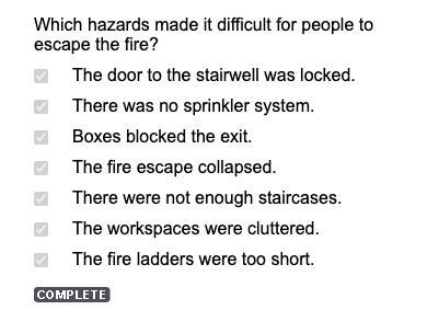 Which hazards made it difficult for people to escape the fire?