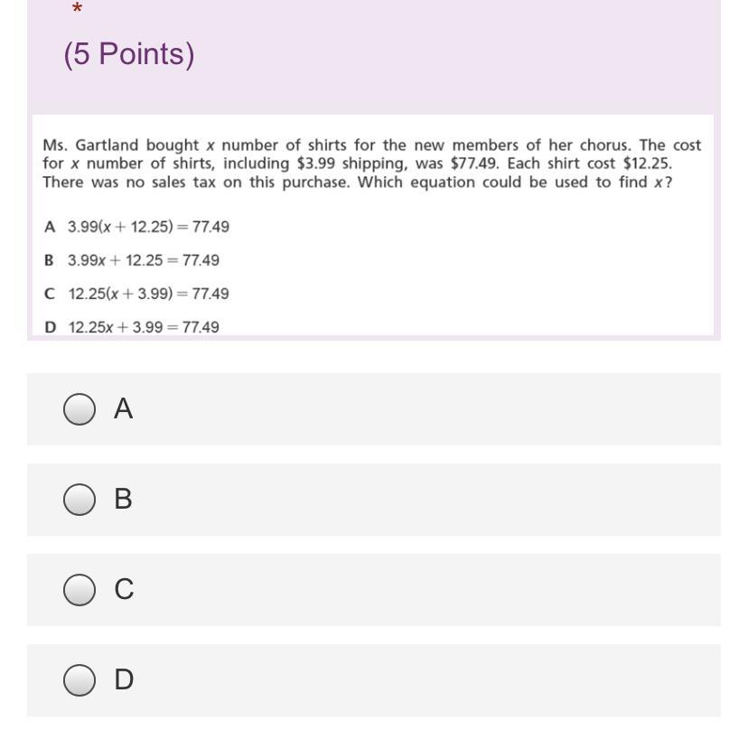 Then it's a matter of finding the number of shirts based on their price and the predetermined shipping cost of 3.99.