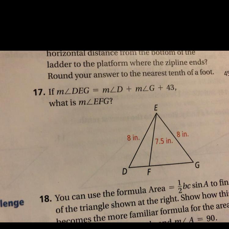 m∠<em>DEG</em> + m∠<em>D</em> + m∠<em>G </em>= 2 (m∠<em>D</em> + m∠<em>G</em>) + 43°