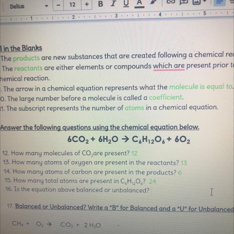 Balanced Equation , for the reaction: