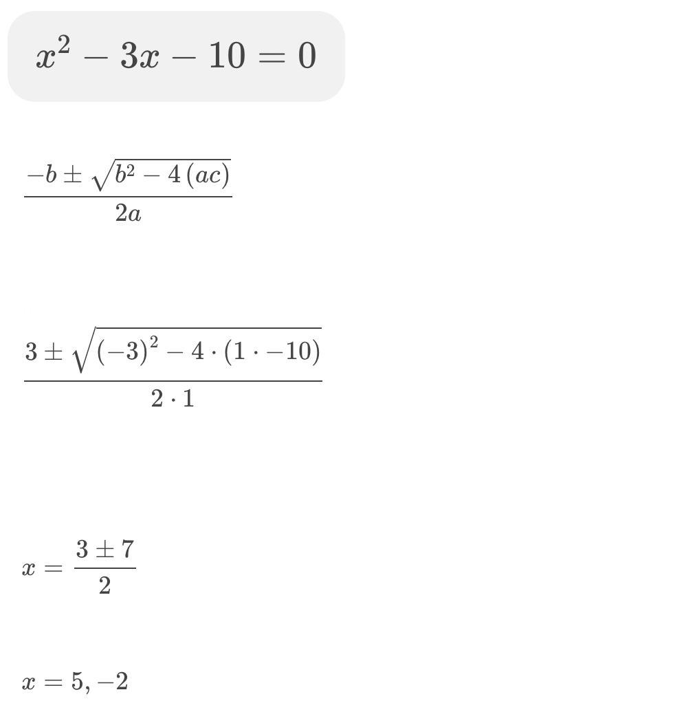<h2>x = 5 or x = -2</h2>