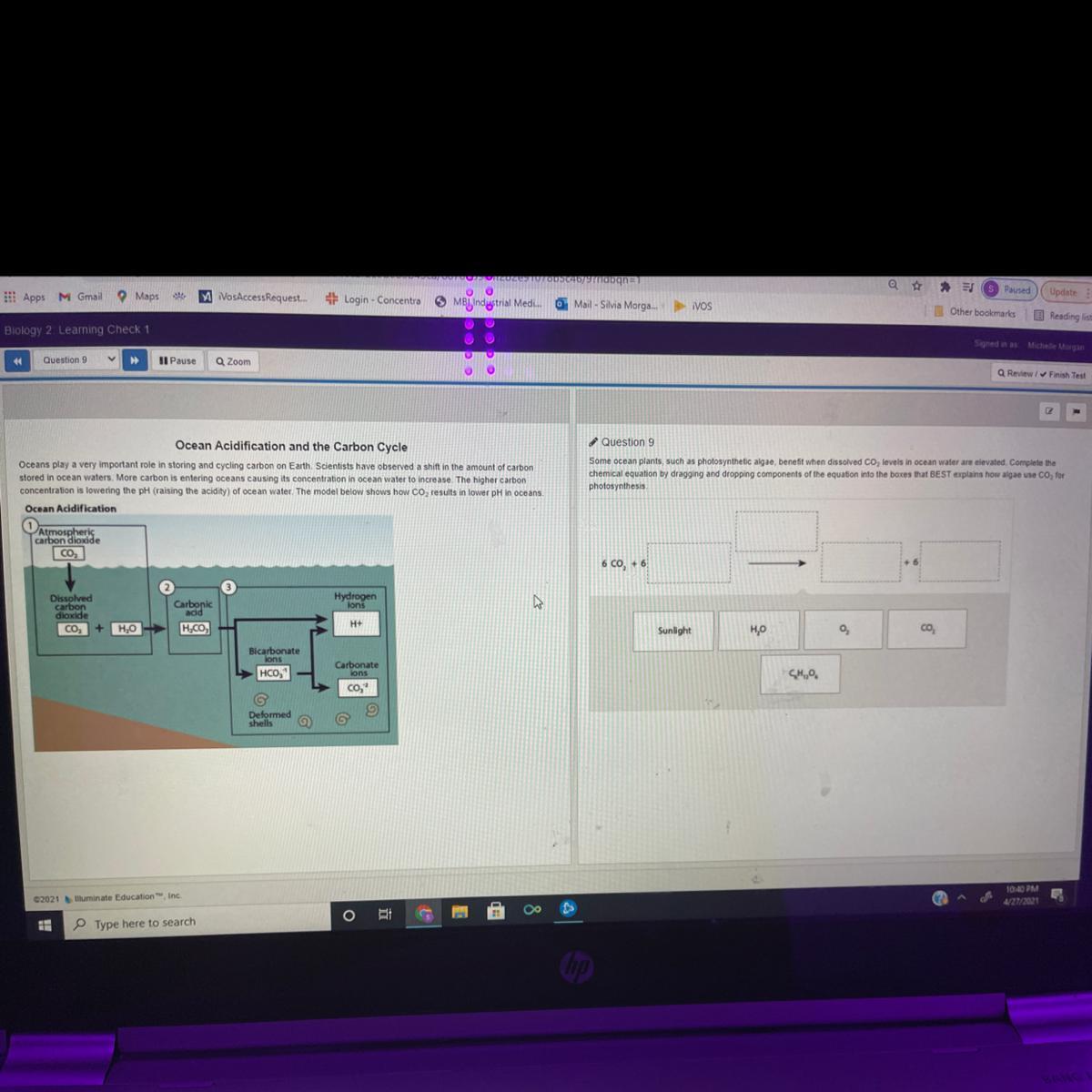 In the process of photosynthesis, carbondioxide reacts with water molecules in the presence of sunlight forming glucose molecules and oxygen gas. The carbondioxide enters the plant body through small openings called stomata, these stomata opens when there is sunlight whereas water enters the plant body through roots from the soil and reaches to the leaves. In leaves both combine produces glucose which can be stored in different parts of the body and some oxygen is used by the plants in the process of respiration and extra is released through stomata.
