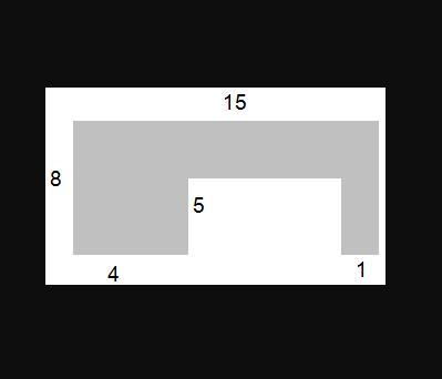 The overall outline is 15 units wide and 8 units high, for an area of ...