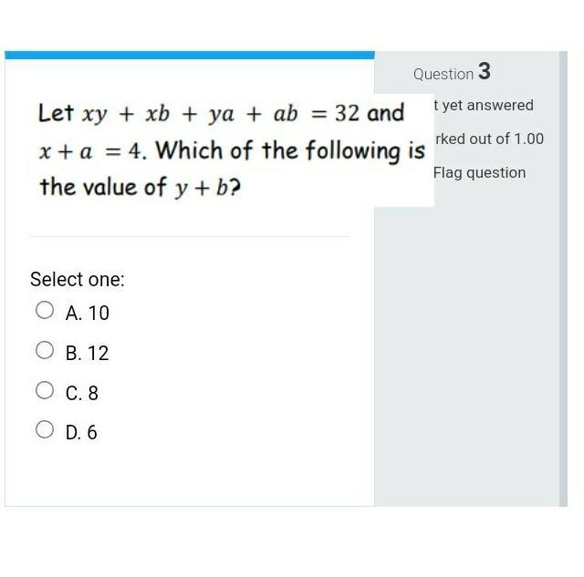 <h3>If x=4 , y= 4+ 8 = 12</h3>