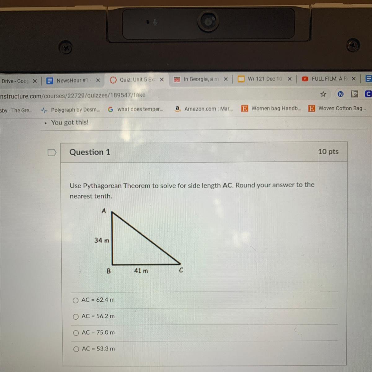And you get 53.26 which rounds to 53.3 on your test. Good Luck!