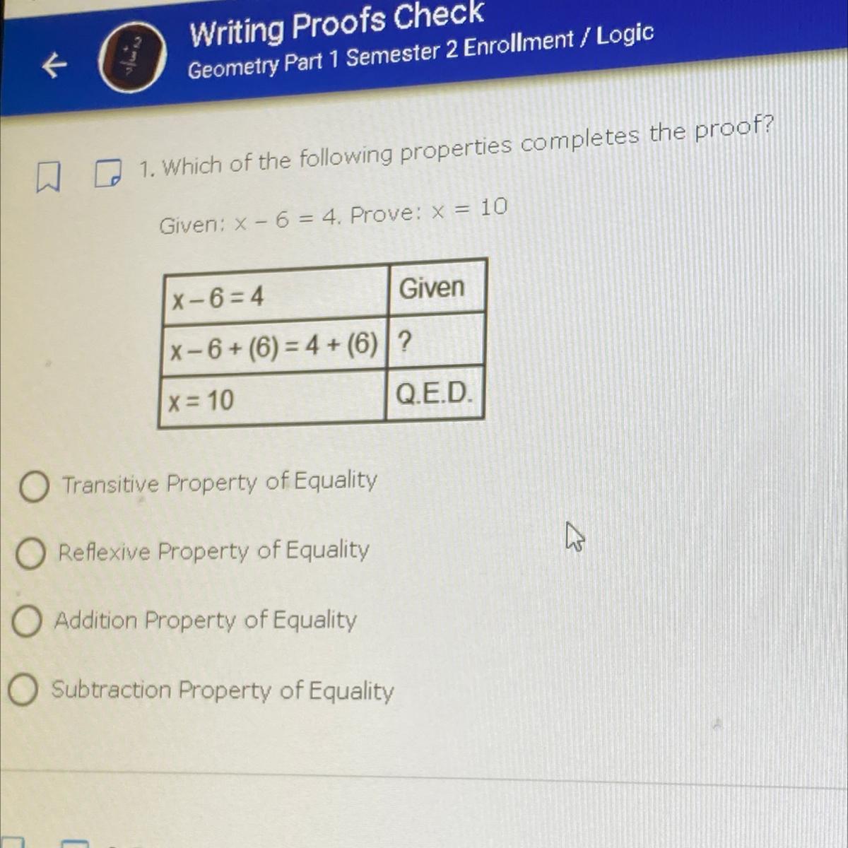 C. Addition Property of Equality