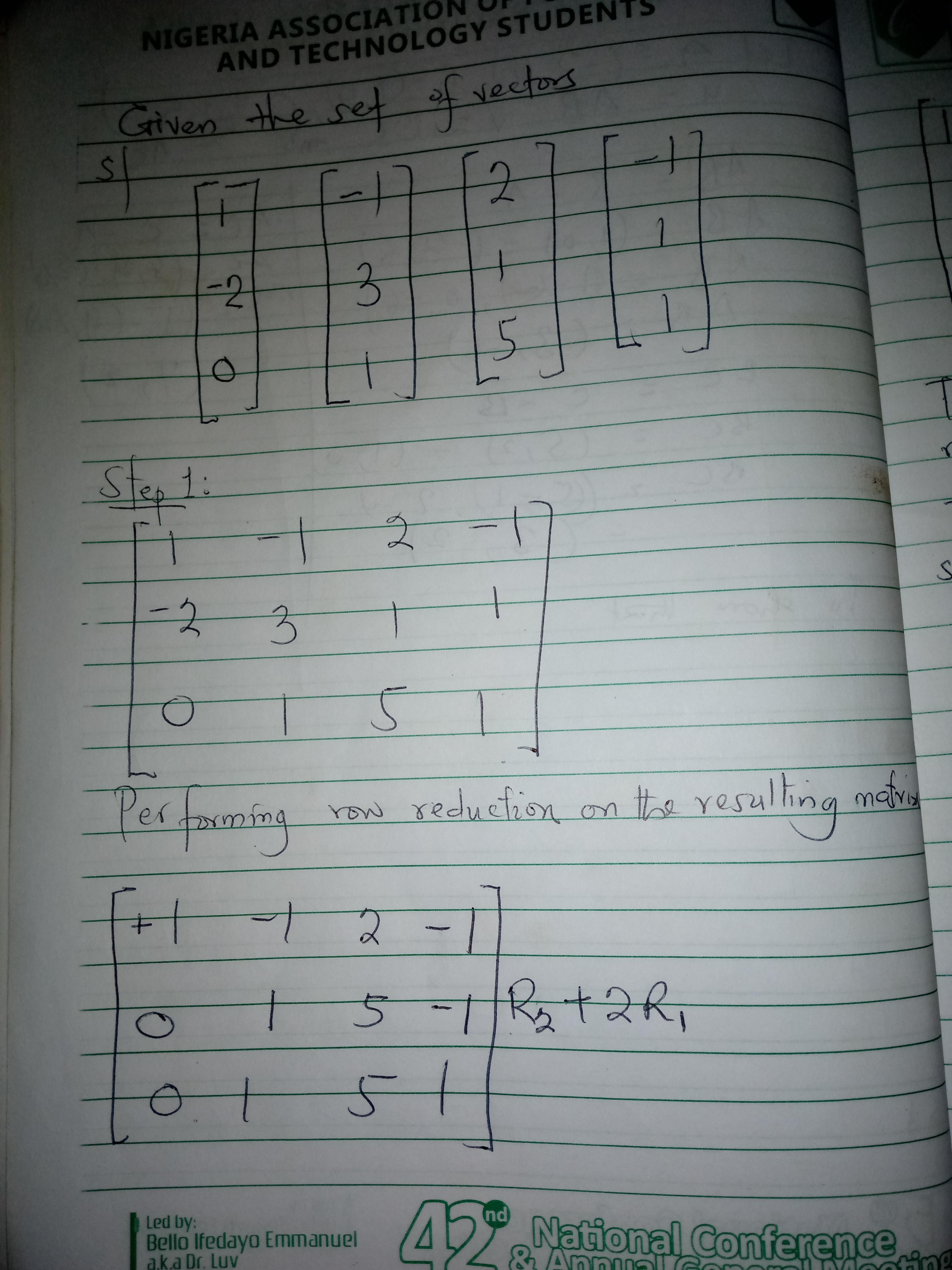 We need to transform the vectors given into a matrix form and then reduce the resulting matrix.