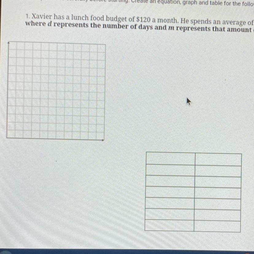 on the the table you have 2 columns: one labele it "days" and one "$ spent" and fill it in: