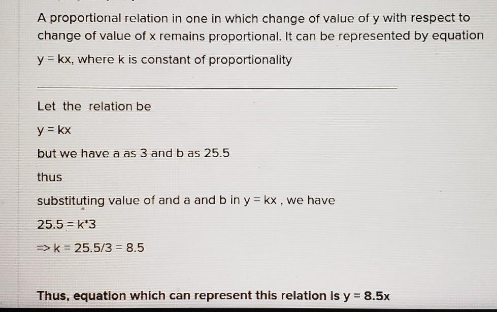 The answer is y = 8.5x