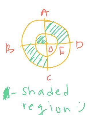 strategy: Find the area of the entire dartboard, then subtracted the inner circle from that whole. we will have the entire outer circle, so divide that by 2 for half of it. Next divide the inner circle by 4 . Then add that to the outer circle answer from above.