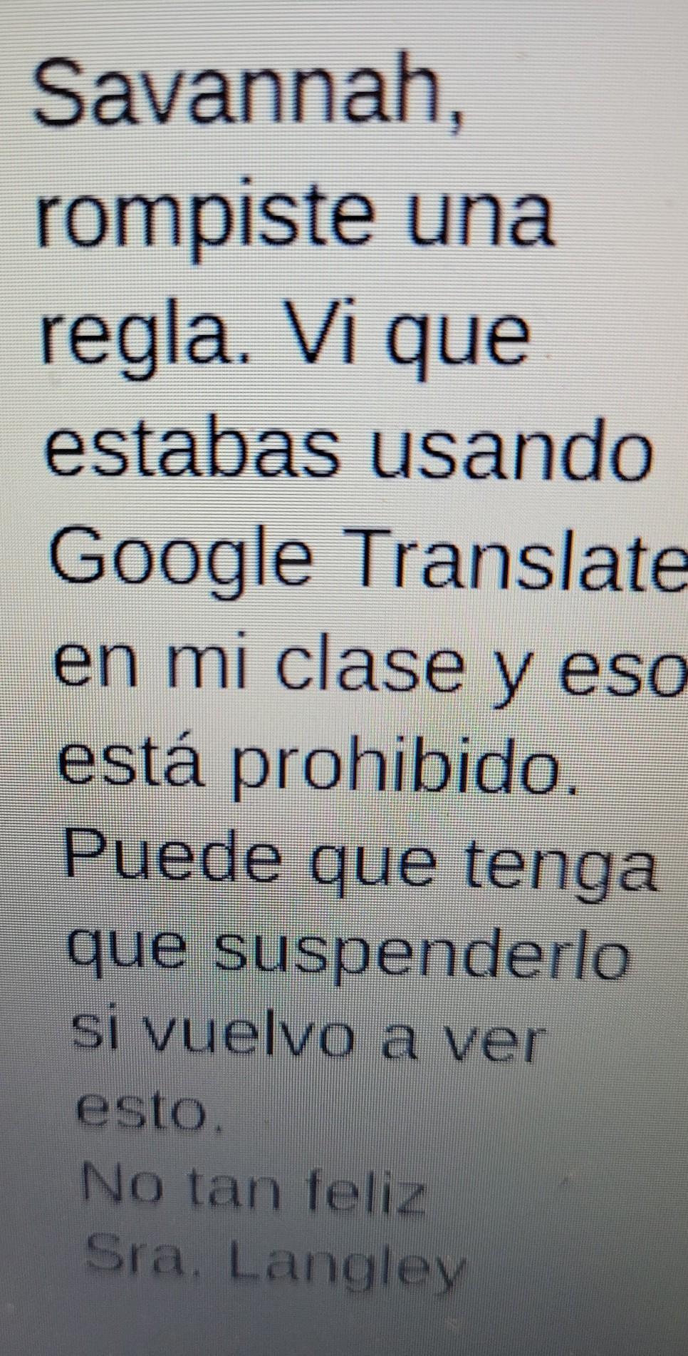 (Answer Translated into Spanish) </span><span>El mío es bastante grande, dar un montón de Tarea sin embargo.</span>