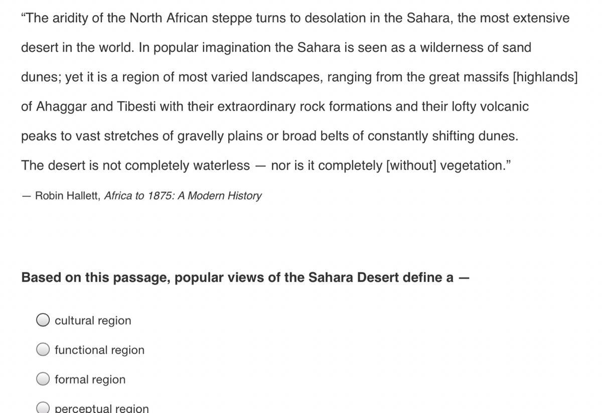 1) Desert, 2) Tundra, 3) Savanna, and 4) the Forests