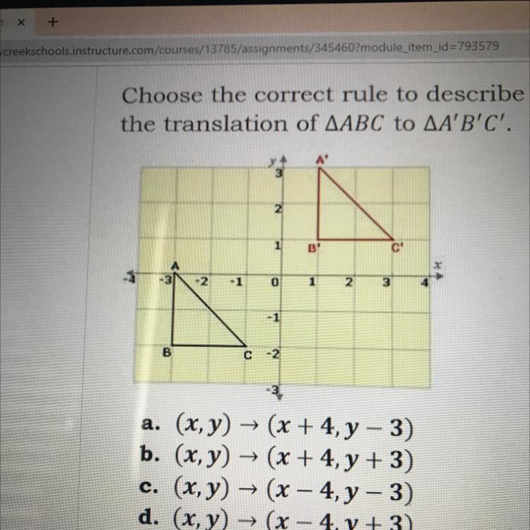 The rule that describes the translation of ΔABC to ΔA'B'C' is