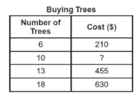 Therefore, the cost of 10 trees will be: 35 × 10 = $350