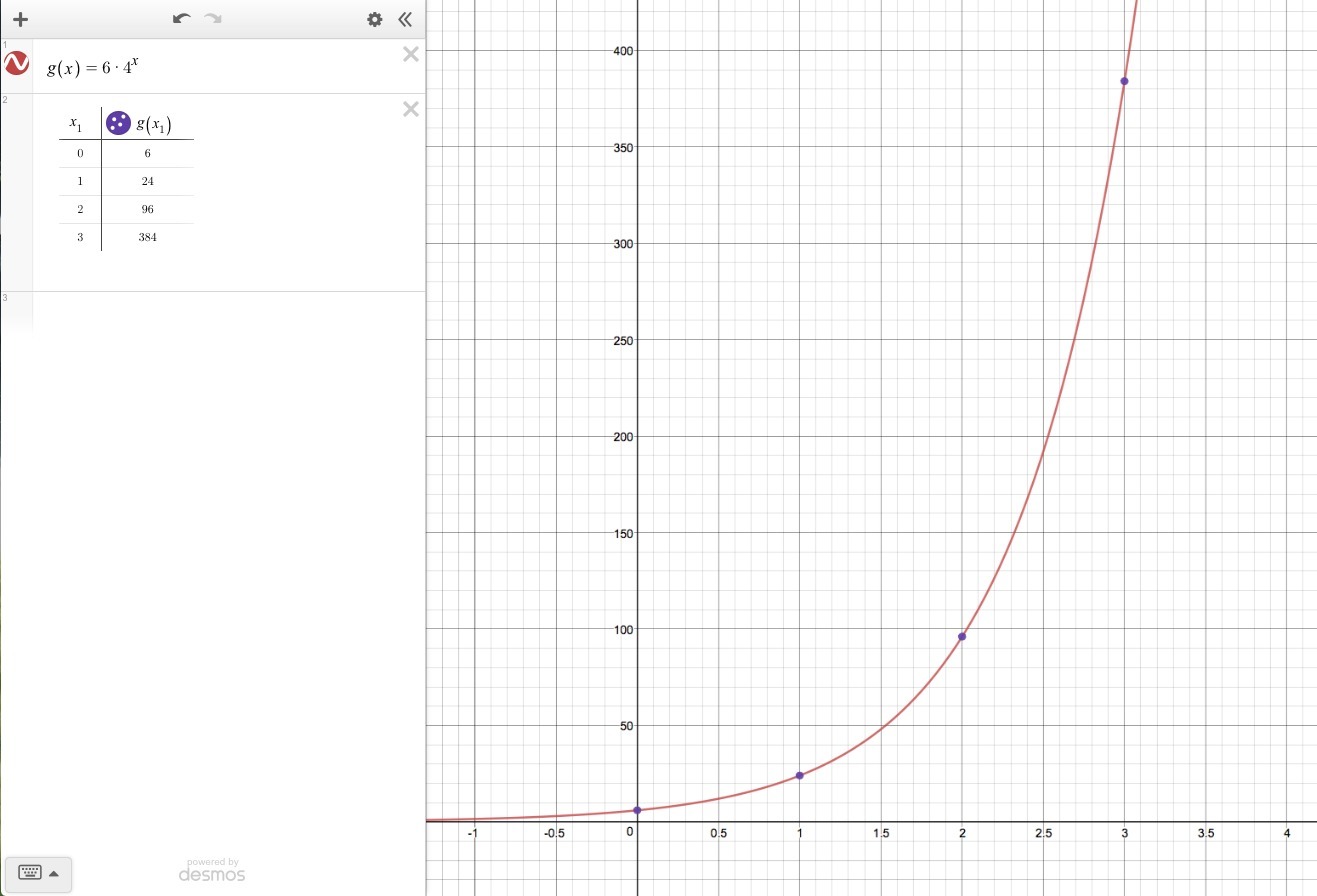 The function, like any exponential function, increases at an increasing rate. The increase in the rate of change reflects the fact that as x increases, the rate of change of g(x) increases. (See the attachment for a graph.)