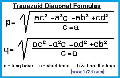 Trapezoid Diagonals: formulas are attached.