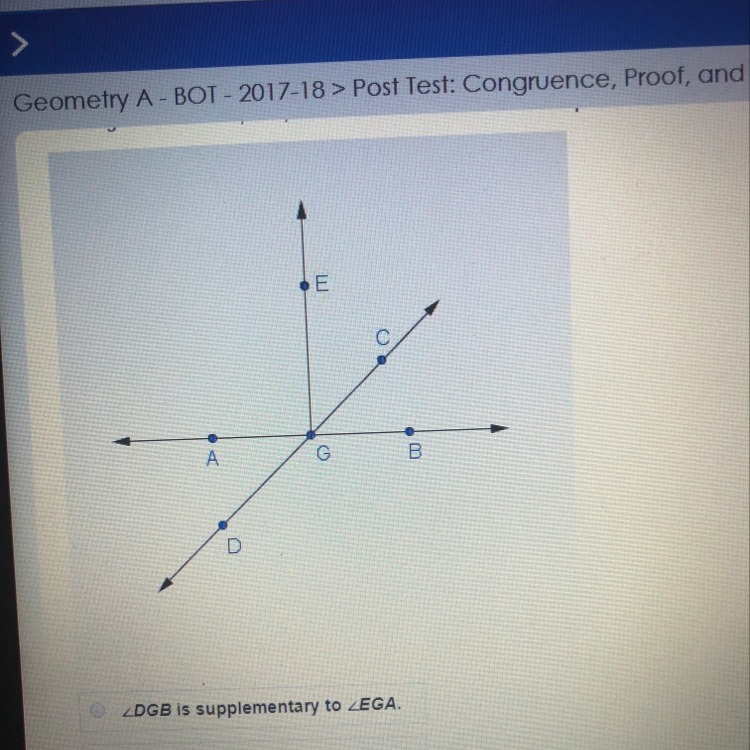 Option A. ∠DGB + ∠EGA ≠ 180°