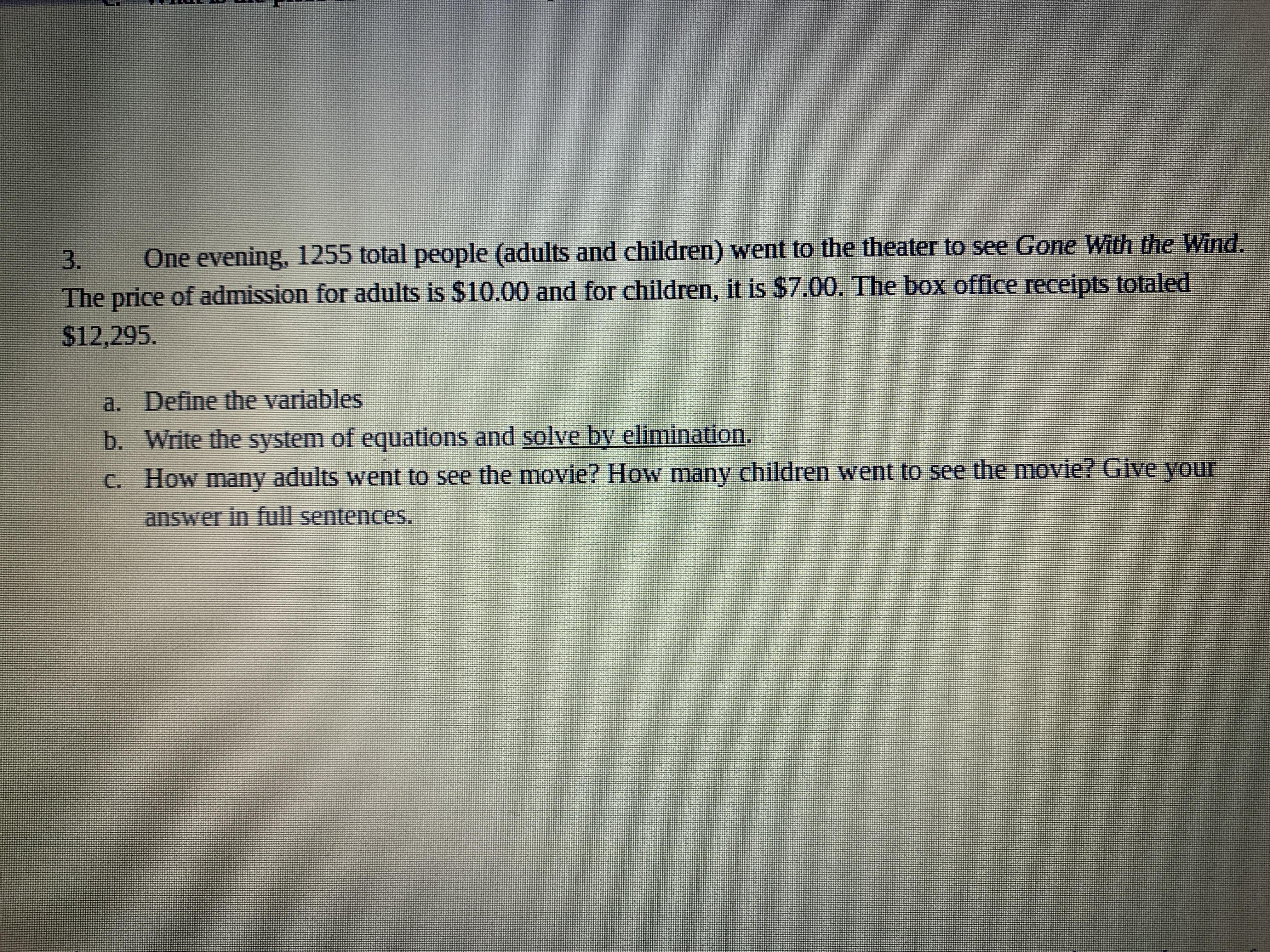 <em>b</em><em>.</em><em>)</em><em> </em><em>T</em><em>h</em><em>e</em><em> </em><em>s</em><em>y</em><em>s</em><em>t</em><em>e</em><em>m</em><em>s</em><em> </em><em>o</em><em>f</em><em> </em><em>e</em><em>q</em><em>u</em><em>a</em><em>t</em><em>i</em><em>o</em><em>n</em><em>s</em><em> </em><em>a</em><em>r</em><em>e</em><em> </em><em>(</em><em>x</em><em> </em><em>+</em><em> </em><em>y</em><em> </em><em>=</em><em> </em><em>1</em><em>2</em><em>5</em><em>5</em><em>)</em><em> </em><em>a</em><em>n</em><em>d</em><em> </em><em>(</em><em>1</em><em>0</em><em>x</em><em> </em><em>+</em><em> </em><em>7</em><em>y</em><em> </em><em>=</em><em> </em><em>1</em><em>2</em><em>,</em><em> </em><em>2</em><em>9</em><em>5</em><em>)</em><em>.</em>