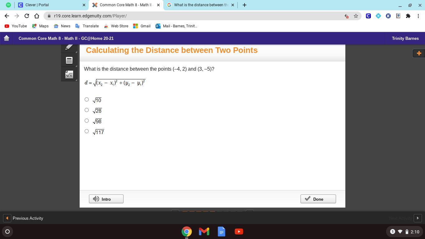 The slope represents the change in y values divided by the change in x values. We can use the formula