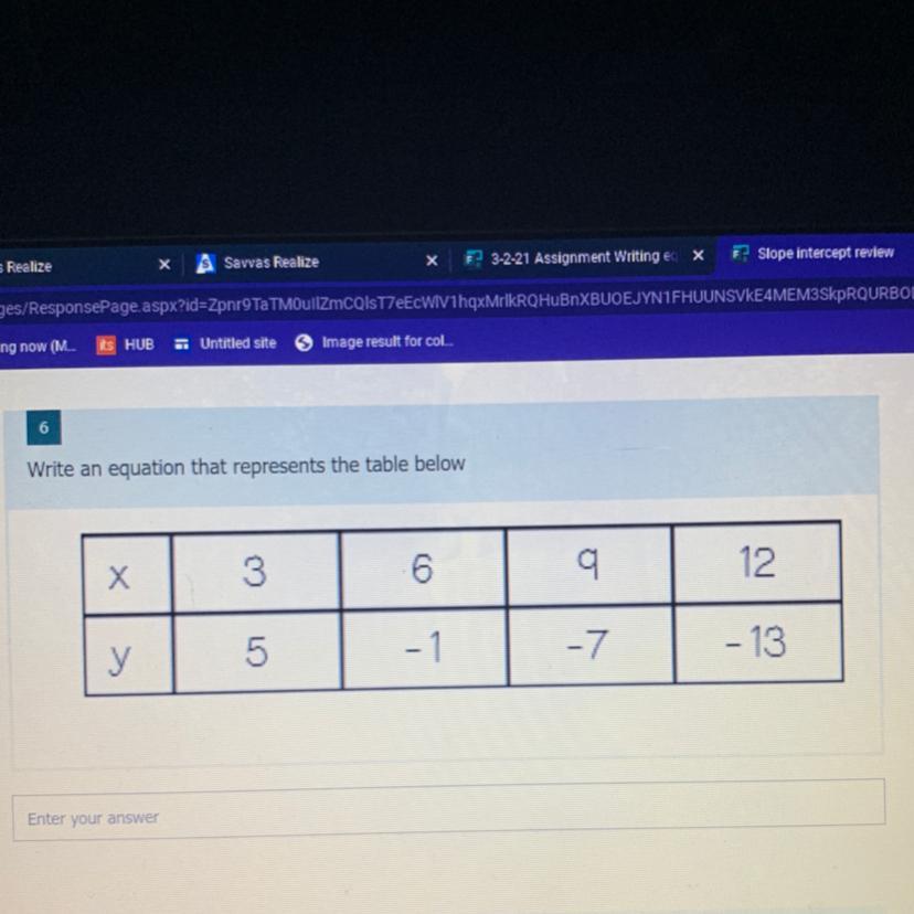 y is going up by 3 as x goes up by 1 so slope=3/1=3.