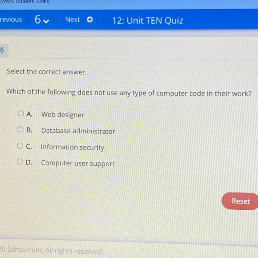 C all the other ones makes sense expect that one