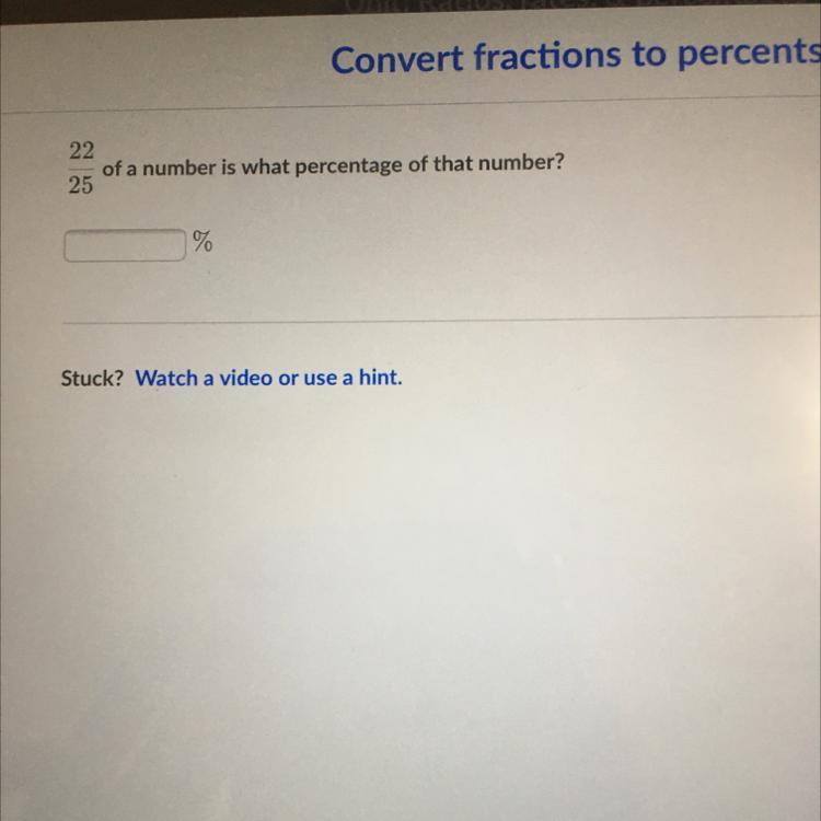Another way to do it is to multiply both 22 and 25 by 4. The denominator will now equal 100 so now the top number will be the percentage. 22*4 is also 88.