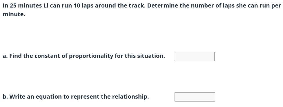 2.5 laps per minute. 25 minutes/10 laps=2.5 laps per minute