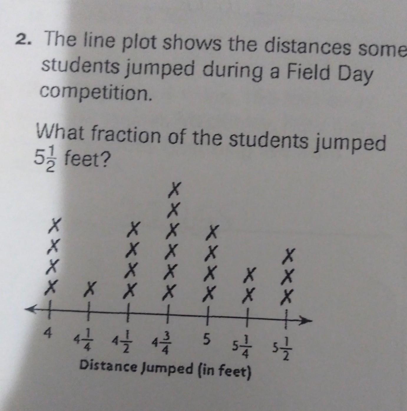the line Plus shows the differences some students jumped during a field day competition what fraction of the students jumped 5 1