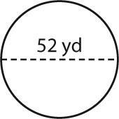 The diameter is the distance from one side to the other through the center. If we look at the circle given, we see the diameter must be 52 yards.