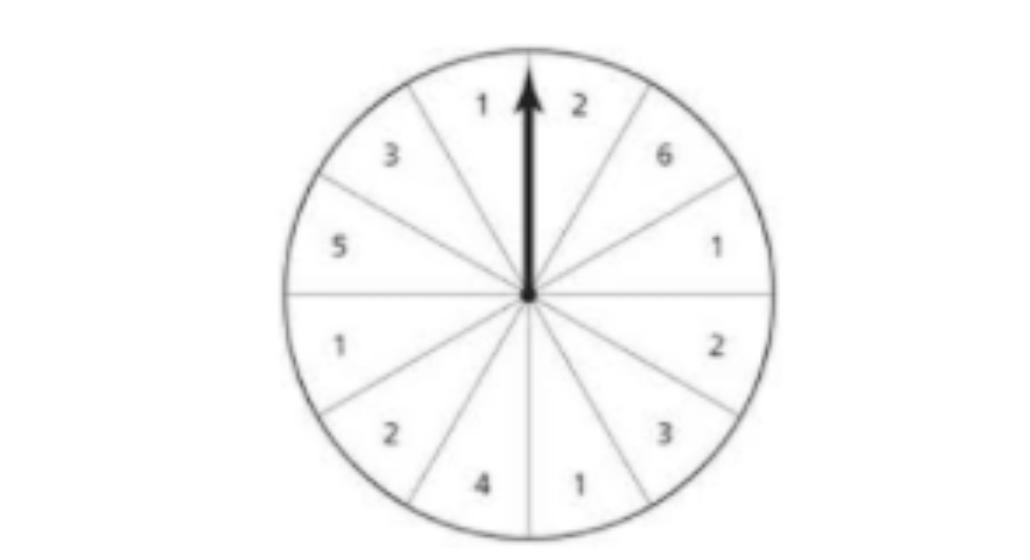 Of these 12 sections, we have the value "1" show up exactly 4 times. That means the other values show up 12-4 = 8 times. The probability of not landing on "1" is therefore 8/12 = 2/3.