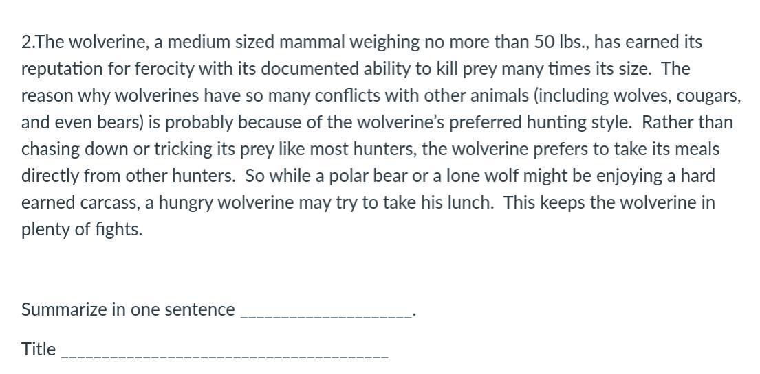 Answer: wolverine explanation.