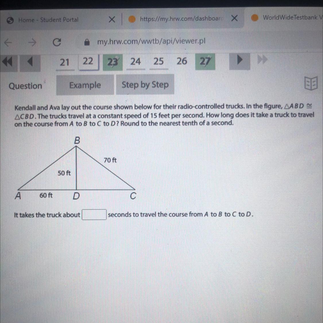 Since triangle ABD is congruent to triangle CBD, this means the corresponding pieces AB and BC are the same length. Both are 70 feet.