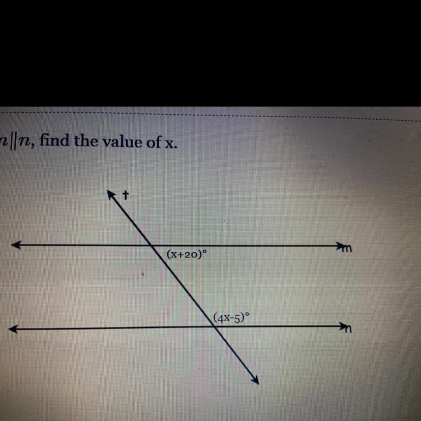 Now let's find the value of x on line n: