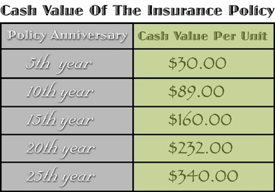 The cash value of his policy by using the table is given by