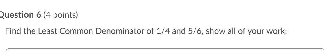 The least common denominator of 1/4 and 5/6 is <u>12</u>