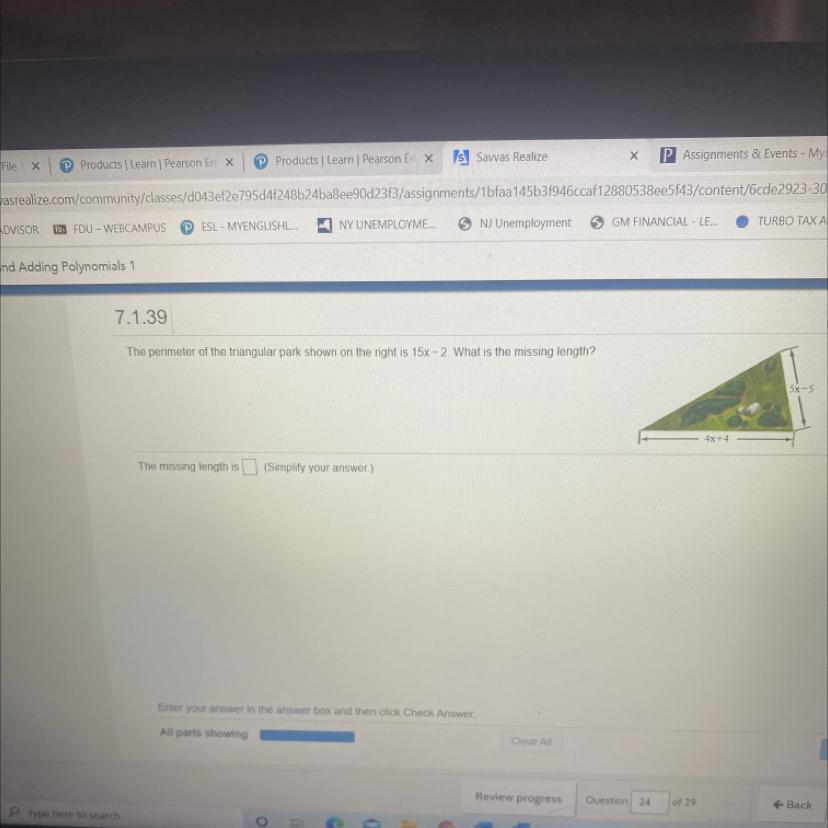 Just take the area of the whole backyard(look up the formula for area of a trapezoid) then if I’m right just subtract the area of the flower gardens
