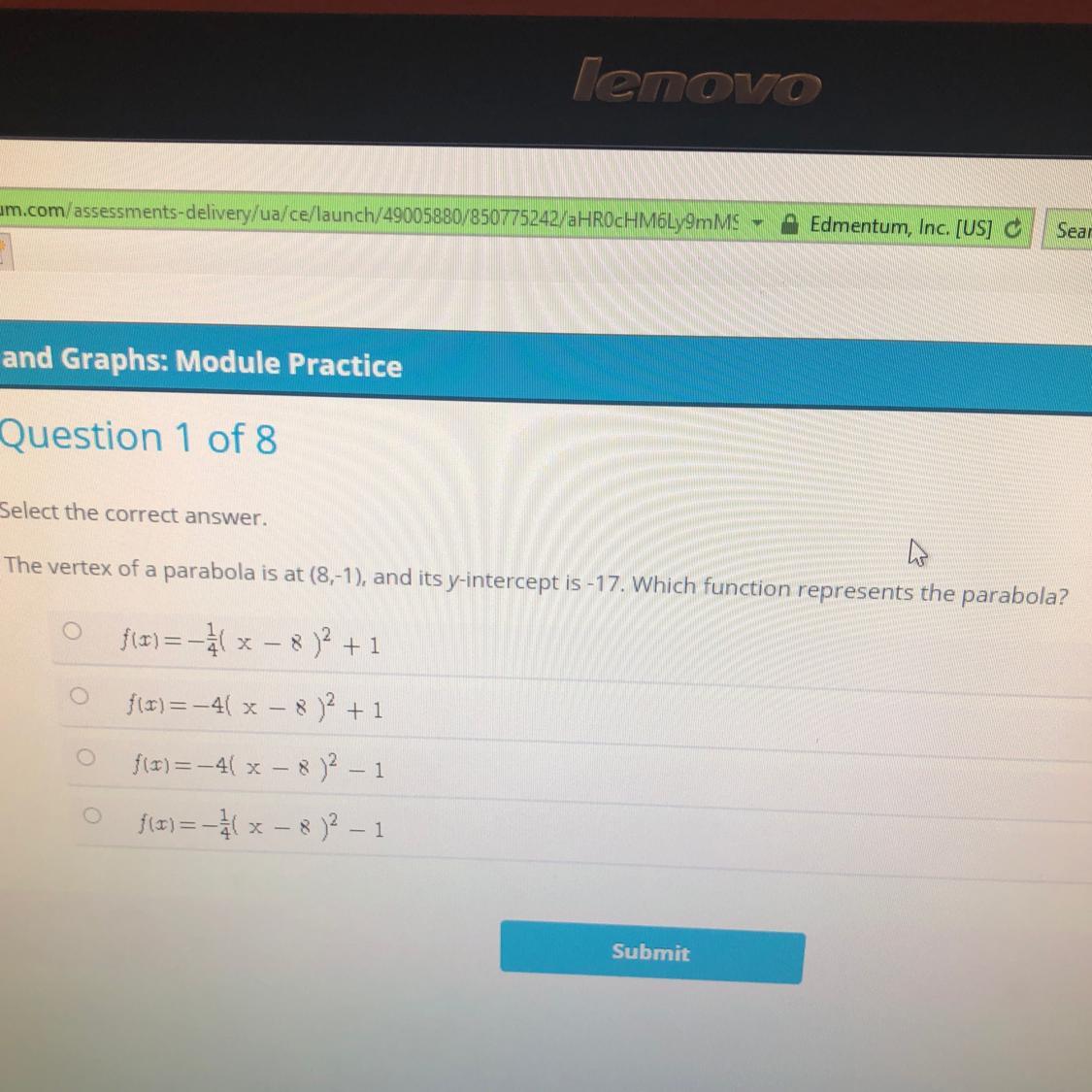 y = a(x - 8)² - 1